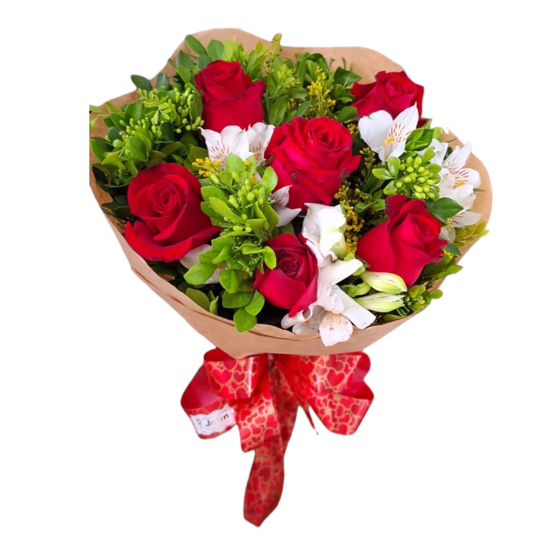 Um buquê que transmite carinho e afeto. As rosas vermelhas, símbolo de amor e paixão, se misturam às flores brancas, criando um arranjo aconchegante e acolhedor. Perfeito para presentear em qualquer ocasião e demonstrar seus sentimentos mais sinceros.