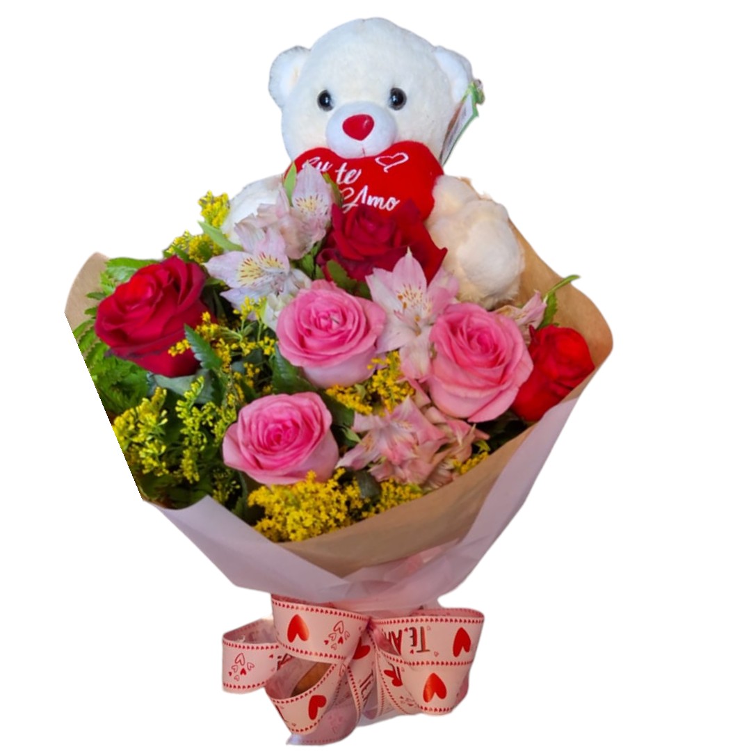 Encante quem você ama com este adorável boquê de flores que combina a beleza das flores com a ternura de um ursinho de pelúcia. Este arranjo é uma escolha perfeita para expressar sentimentos profundos em diversas ocasiões, como aniversários, Dia dos Namorados, ou simplesmente para alegrar o dia de alguém especial.
