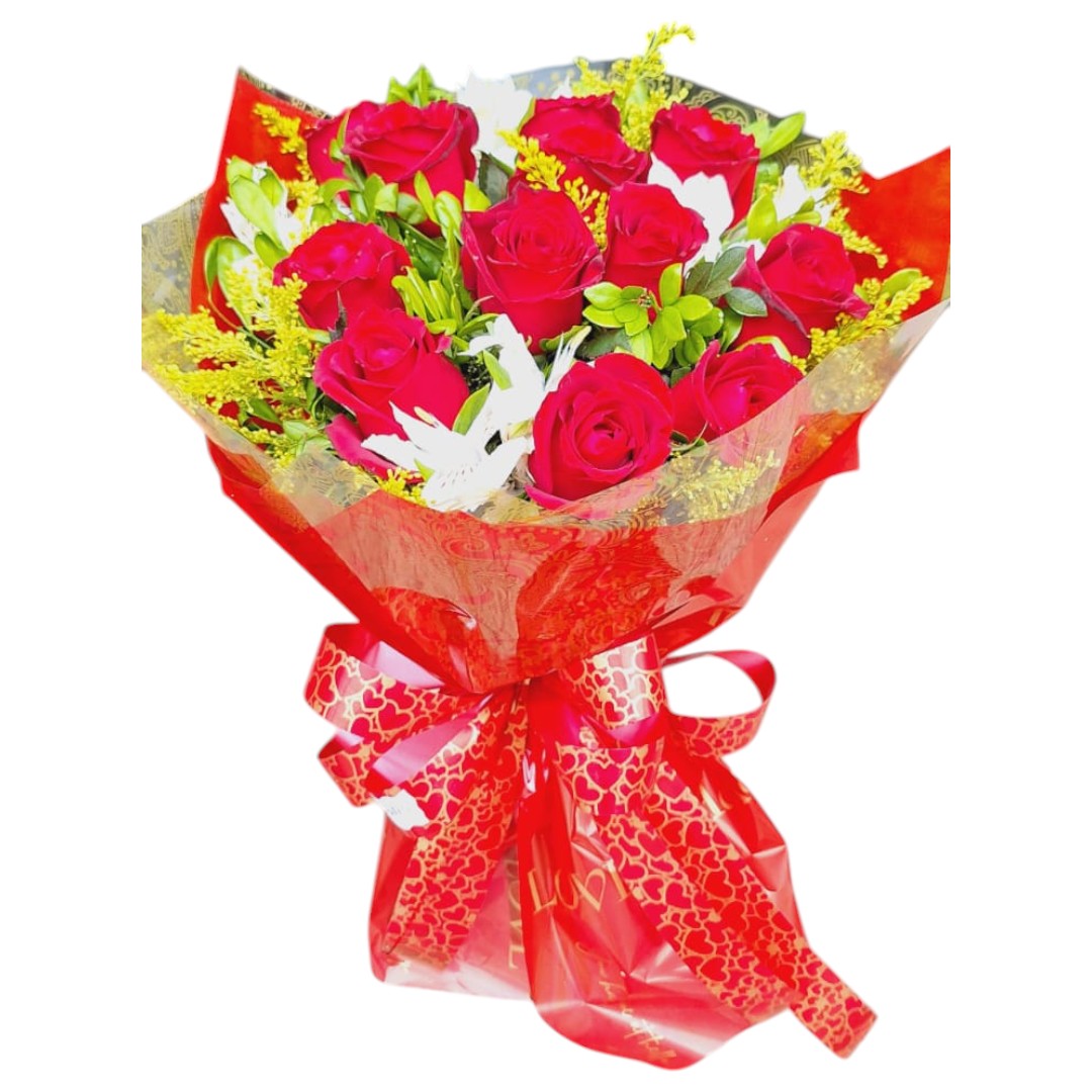 O buquê composto por  12 rosas, cada rosa é cuidadosamente escolhida para garantir  frescor e qualidade, criando um arranjo deslumbrante e impactante.